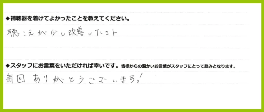 補聴器が毎日の中でしっかり役立っていること、私たちもとても嬉しく思っています。